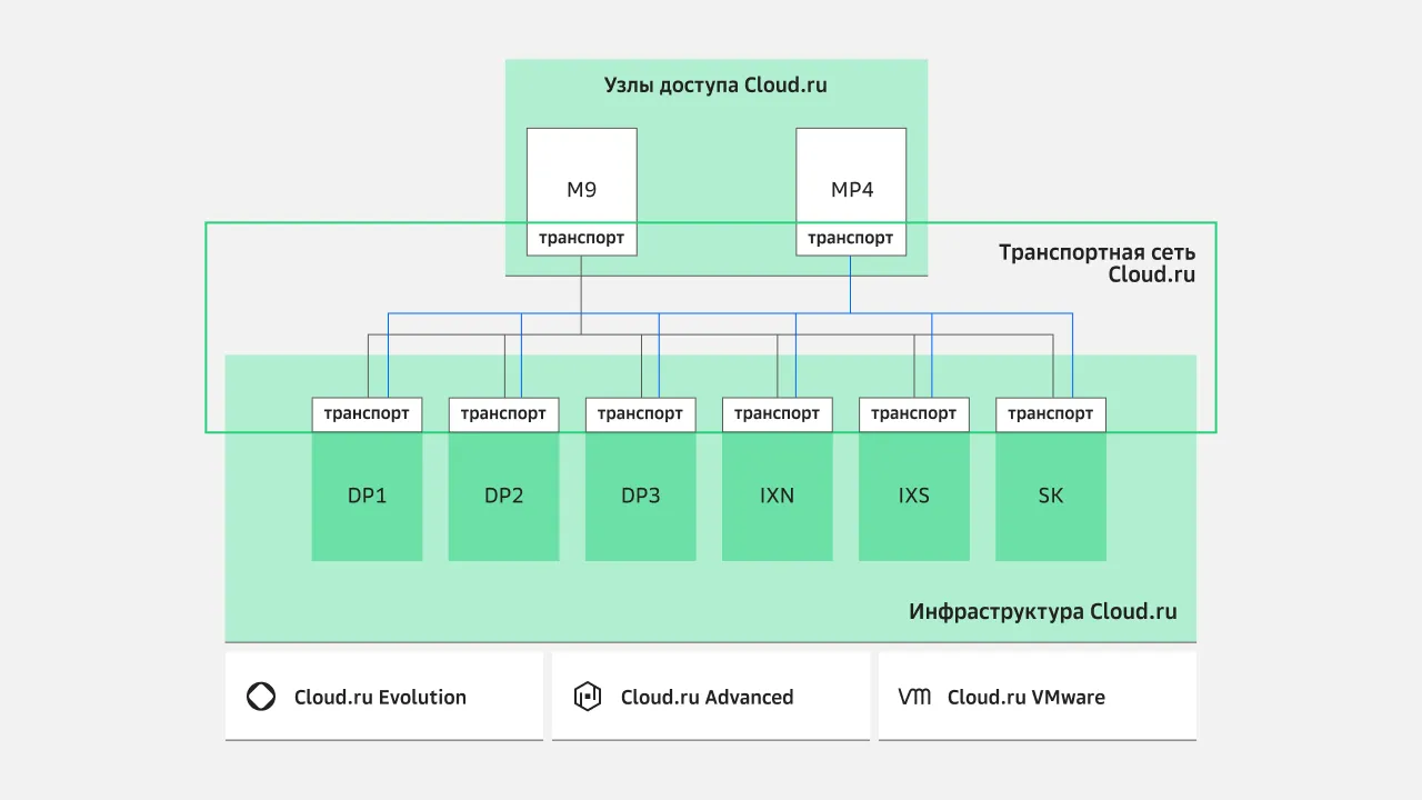 Межплатформенная связность (МПС) — это сервис для организации сетевой связности между облачной инфраструктурой на платформах Cloud.ru Advanced, Облако VMware и Cloud.ru Evolution.